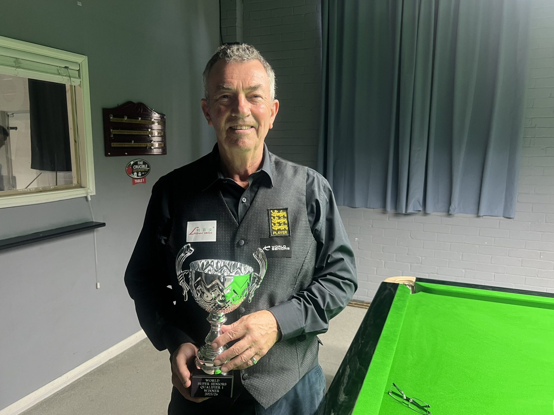John Hunter | World Super Seniors - Event 1 Winner | https://seniorssnooker.com/burden-begins-bid-for-crucible-return-in-style/ |